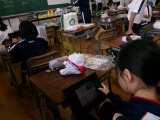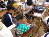 ナップザック、トートバック作り 6年家庭科 2025年10月10日 【知】大きな夢もつ子, たかせの子活動記録 6年生は、ミシンを使って作品作りをしています。さすが6年生、ミシンの使い方は上手です。作り方はタブレットで動画を見ながら確認することもでき、友達を協力し合いながら進めていました。