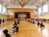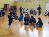 1年と6年、2年と5年のペア学年でなわとび大会を行いました。高学年は低学年の跳ぶ回数を数えて、跳び終わった後は「がんばったね」と声がけをしていました。低学年は高学年の跳ぶ様子を憧れのまなざしで見ていました。