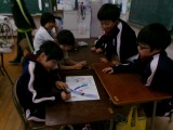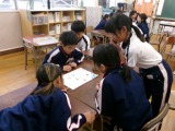 金曜日の朝活動はあったかタイムで、3年生は協力絵画という活動を楽しみました。声を出さずにジャスチャーで伝え合って、出された条件にかなった絵をグループで仕上げていくというゲームをしました。みんなとても楽しそうに活動していて、出来上がったあとは、感想を言い合って絵に題名を付けました。